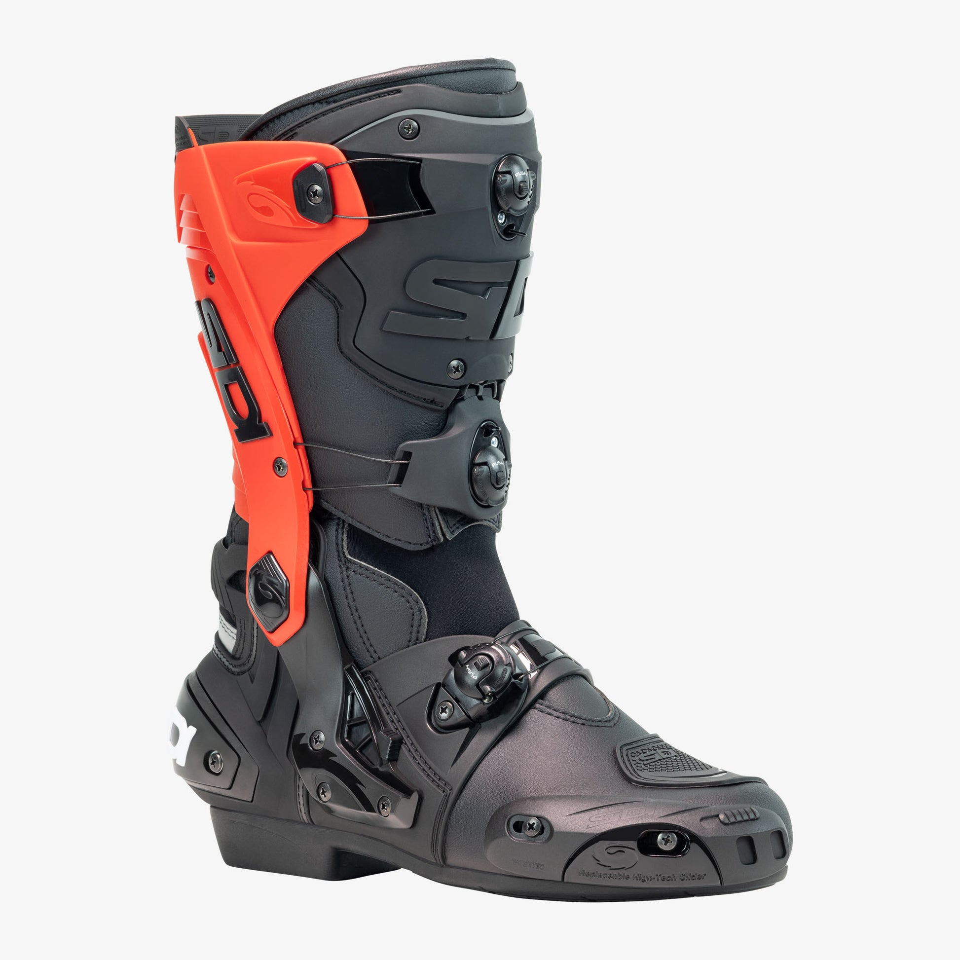 The only boots that wrap smoothly the Tibia, thanks to its dual-sided adjustment. Made of high-density resin, our proprietary dialling system is made to last over time, and it is entirely interchangeable when times require it.
